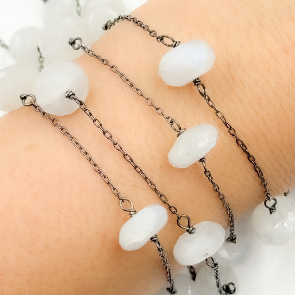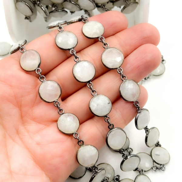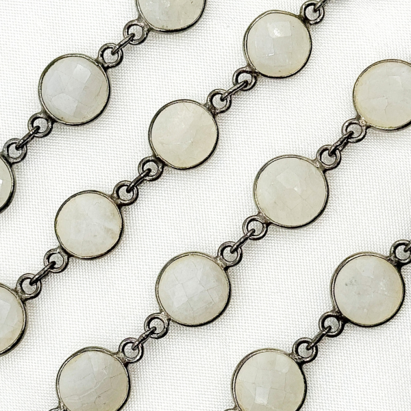 White Moonstone Round Shape Bezel Oxidized Wire Chain. WMS41 Clearance Official Site
