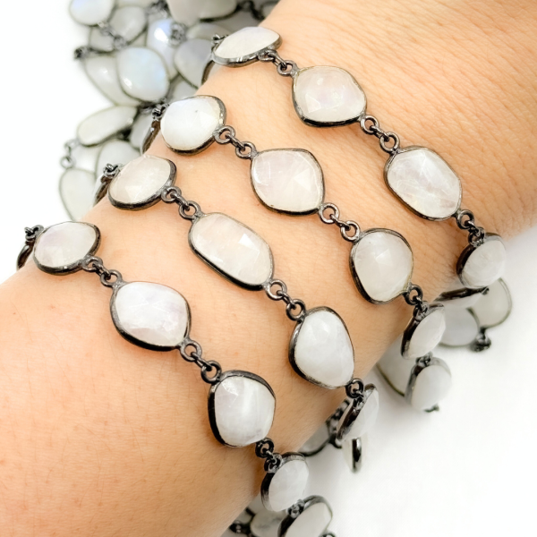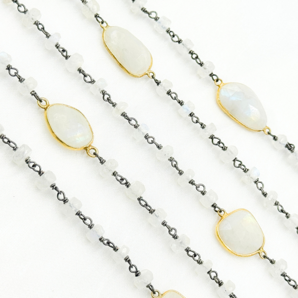 White Moonstone Mix Shape Bezel Oxidized Wire Chain. WMS39 Sale Original