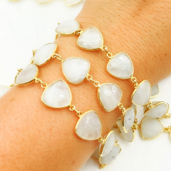 White Moonstone Triangle Shape Bezel Gold Plated Wire Chain. WMS15 Clearance Best Place