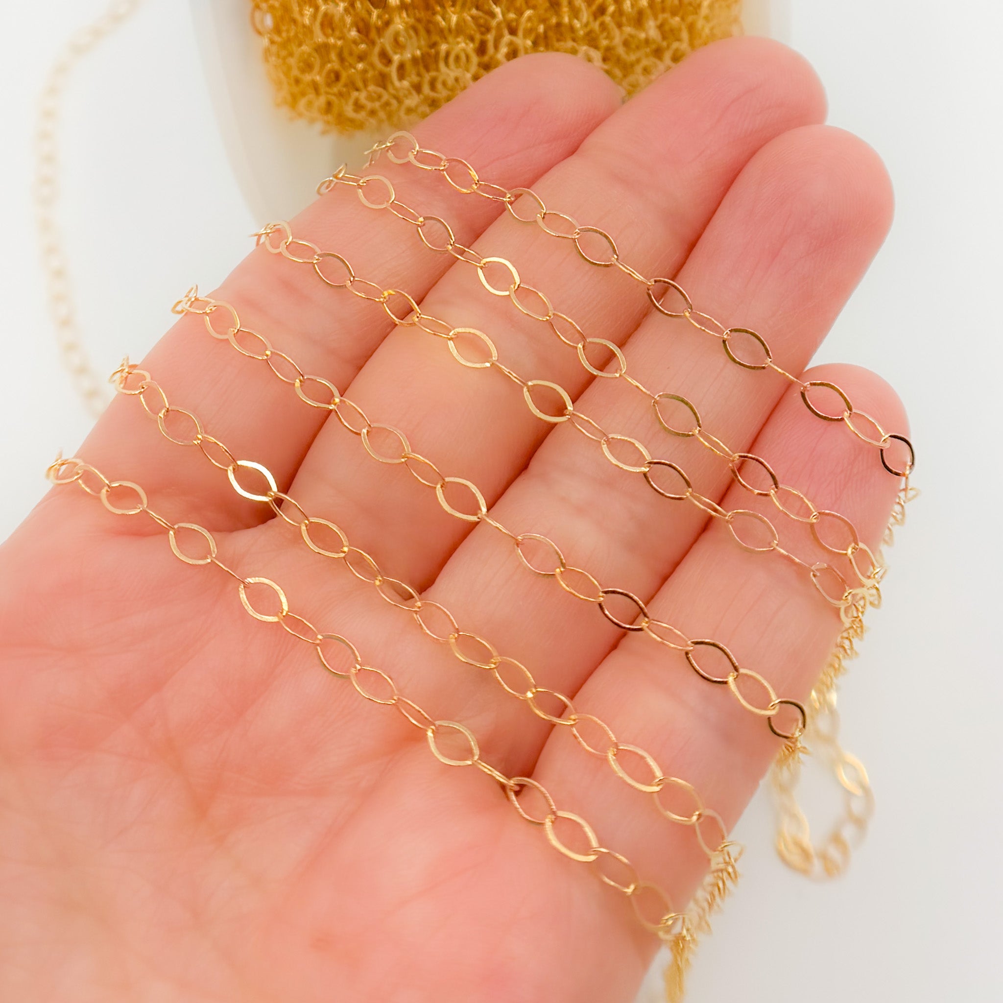 14K Gold Filled Flat Oval Link Chain. Size: 3x5mm. Sold by Foot.