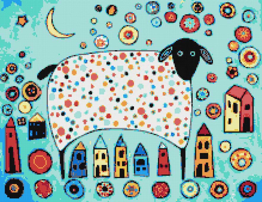 Abstract sheep counted cross stitch kit.