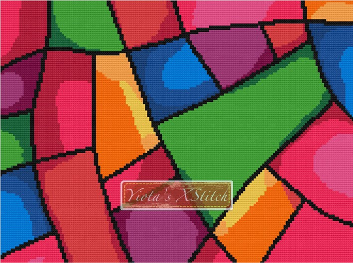 Abstract stained glass counted cross stitch kit.