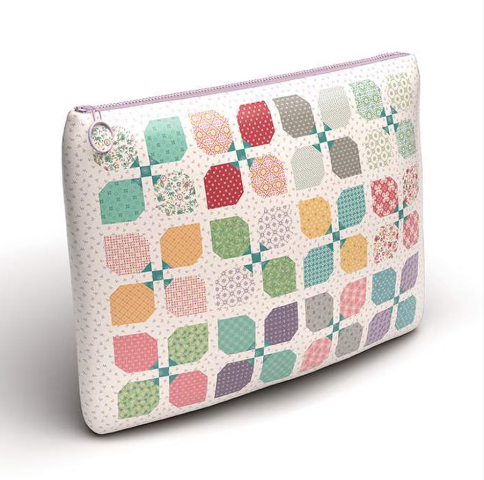 The Piece & Plenty Vinyl Project Bag by Lori Holt of Bee in my Bonnet is a lovely vinyl zipper pouch that is perfect for cosmetics, sewing supplies, or craft projects. This beautiful zipper pouch is fully lined. Size is approximately 9″ x 12″.